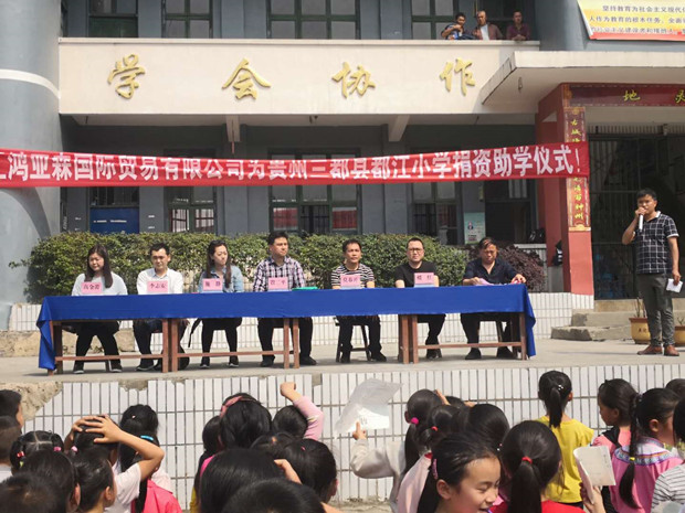 古人云‘十年樹木百年樹人’,梁啟超先生說“少年強(qiáng)則中國強(qiáng)”。我司黨支部在做好公司日常黨建和經(jīng)營工作的同時(shí),把社會(huì)責(zé)任也作為公司發(fā)展的一個(gè)重要方面,努力用實(shí)際行動(dòng)踐行習(xí)總書記提出的“精準(zhǔn)扶貧,扶貧先扶志,扶貧必扶智”的要求,于2017年啟動(dòng)了捐資助學(xué)5年計(jì)劃,幫助貴州南部山區(qū)的三都水族自治縣都江鎮(zhèn)民族小學(xué)部分貧困學(xué)生。