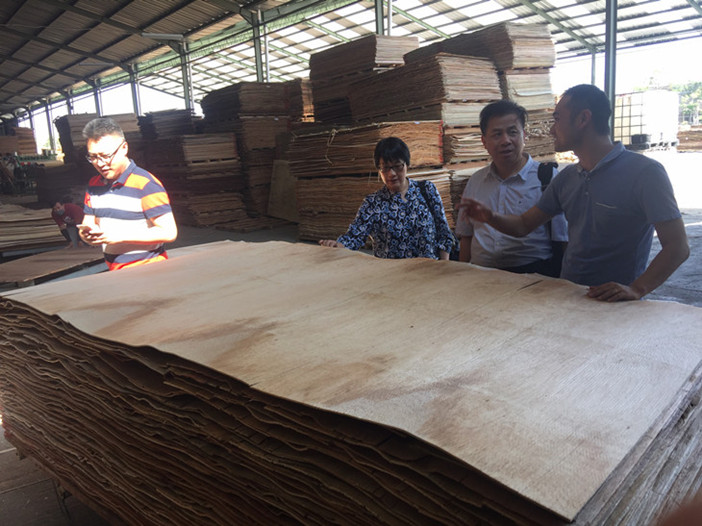 為了應對美國對中國產硬木膠合板實行“雙反”,我司于2017年下半年在印度尼西亞西爪哇省東部港口井里汶設立了人造板材貨源基地,借助當地原有工廠的生產資源,派出技術人員給予指導,逐步生產出適銷美國市場的人造板材系列產品。調研期間,蔣總一行就工廠安全生產、產品質量控制、轉口貿易美國訂單、與我國“一帶一路”對接等情況與公司及工廠管理人員做了深入交流,并給予指導性建議意見。
