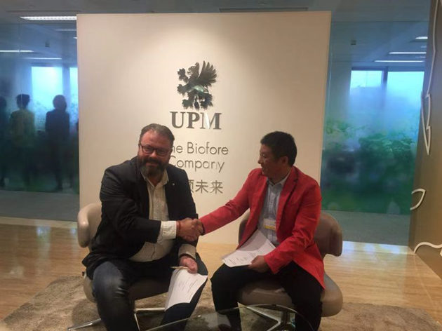 鑒于我司與芬蘭UPM公司多年來在歐松板材進口業務上的深度合作,經過前期認真會商,我司總經理室張永堂先生與芬蘭UPM公司鋸材部銷售及供應鏈總監mikko先生,分別代表各自公司簽署了5160萬美元的歐松板材進口意向性協議。這一協議的簽署標志著我司與UPM公司的合作邁上了一個新的臺階。當天,匯鴻集團黨委書記、董事長張劍先生率領集團相關領導以及部門負責同志一并參觀了芬蘭國家展臺,以及UPM公司展示的本屆進博會第一個進關產品——全球唯一一款全部用森林制品制作的環保概念汽車,并與UPM公司相關負責人做了現場交流。