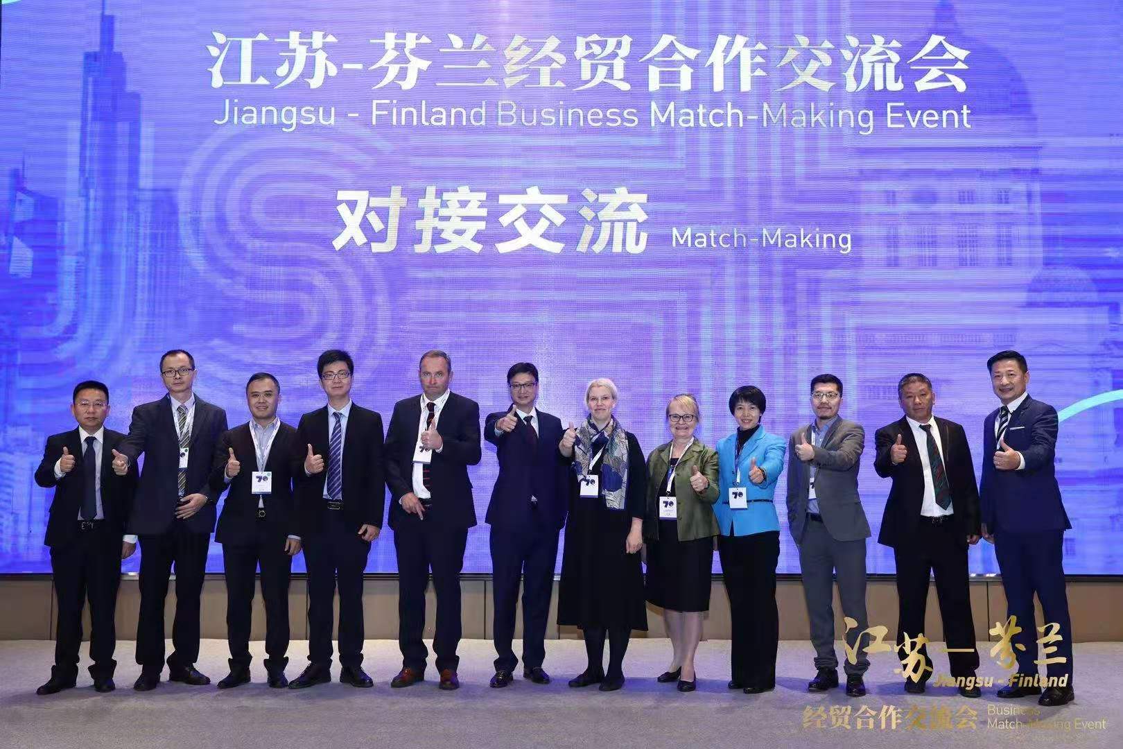 11月12日上午,由芬蘭國家商務促進局和江蘇省商務廳共同主辦的江蘇-芬蘭經貿合作交流會在南京江北新區成功舉行。芬蘭代表團和江蘇代表團共計150人參加會議,江蘇省商務廳副廳長孫津、芬蘭駐上海總領事何朗明出席會議并致辭。我司總經理張永堂應邀參加了本次會議。