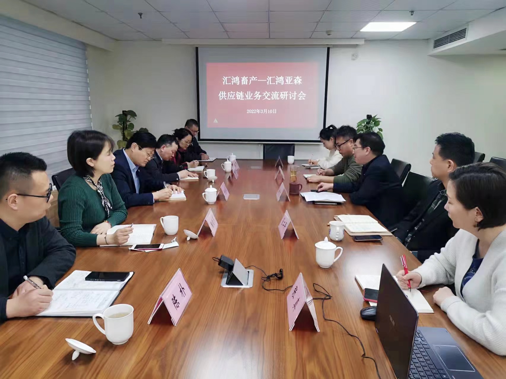 3月10日上午,匯鴻畜產(chǎn)公司黨委書(shū)記、董事長(zhǎng)何宜軍帶隊(duì)到我司就產(chǎn)業(yè)鏈、供應(yīng)鏈建設(shè)等議題展開(kāi)交流研討,兩家公司領(lǐng)導(dǎo)班子成員及相關(guān)部門負(fù)責(zé)人參加座談。