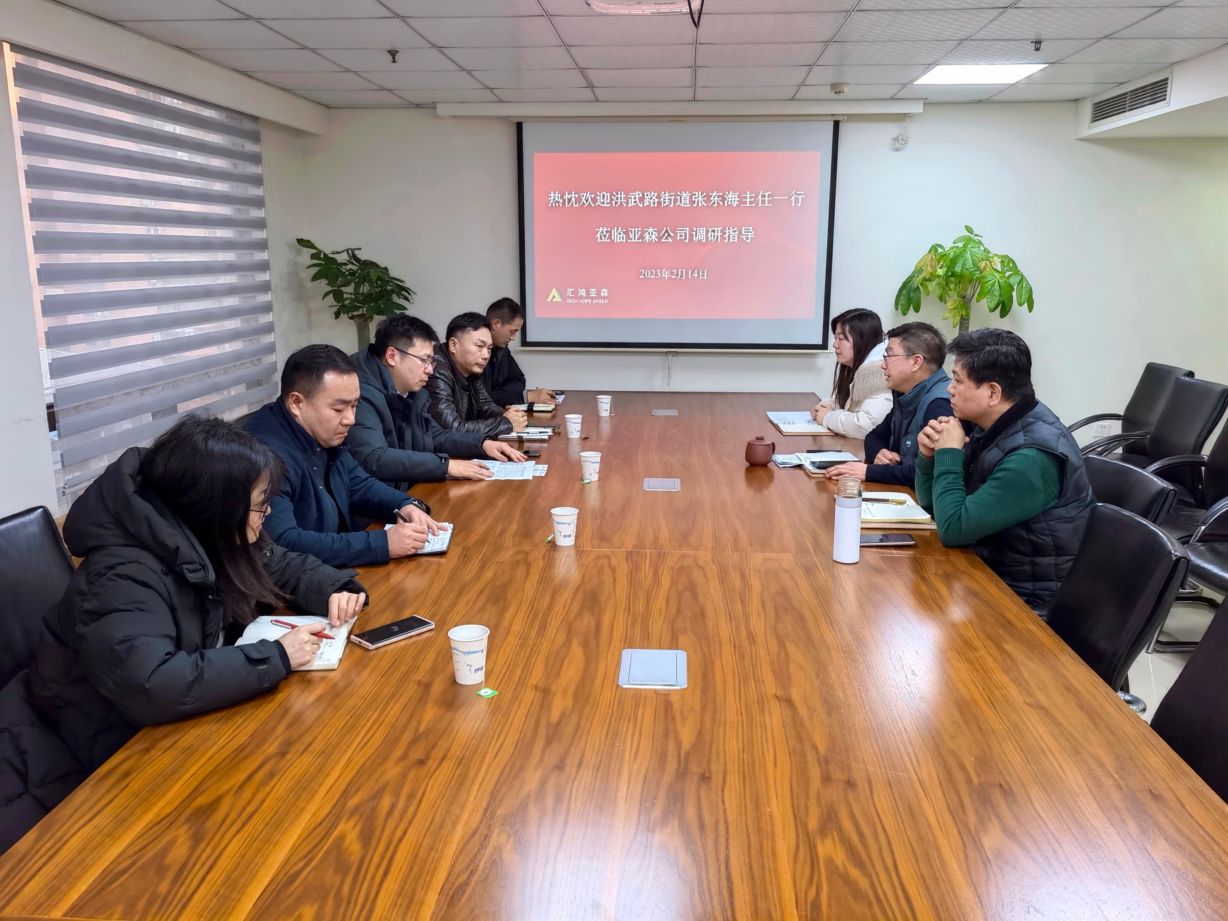 2月14日下午,秦淮區洪武路街道主任張東海、副主任吉亞松攜相關業務科室人員到我司調研走訪,就企業當前經營、納稅等情況進行座談交流。我司董事長徐學文、副總經理管二平參加交流。