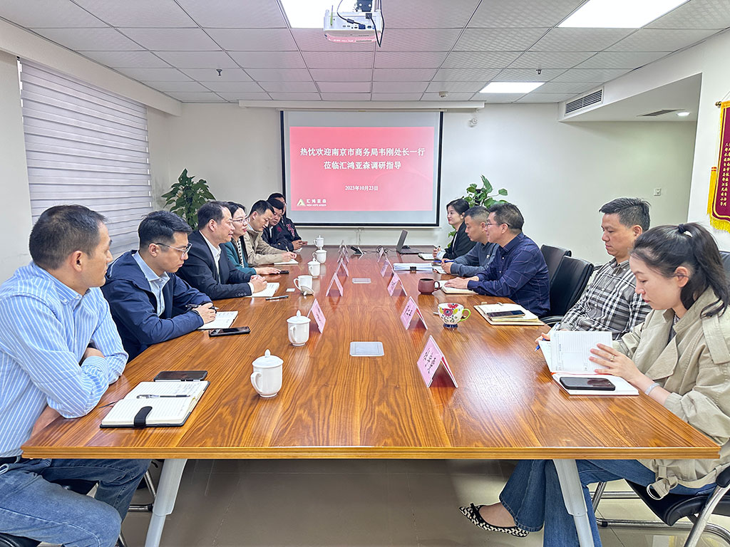 10月23日上午,南京市商務(wù)局服務(wù)貿(mào)易和商貿(mào)服務(wù)業(yè)處處長韋剛攜秦淮區(qū)商務(wù)局副局長王媛、洪武路街道及南京服務(wù)貿(mào)易協(xié)會相關(guān)負責人一行赴我司調(diào)研指導。我司黨支部書記、董事長徐學文及相關(guān)人員參加調(diào)研會議。