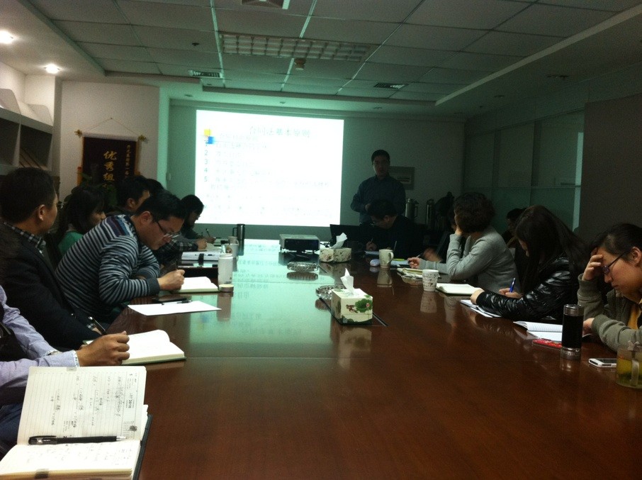 孫韜律師就合同法的概念、特征、基本原則、訂立有效合同應當具備的條件、合同的內容以及合同的履行等做了講解,并結合生動的實例對合同法的相關條款做了進一步的解釋。此次培訓進一步加強了全體員工對合同法、證據法知識的掌握,對今后公司業務的順利開展起到了積極推動作用。