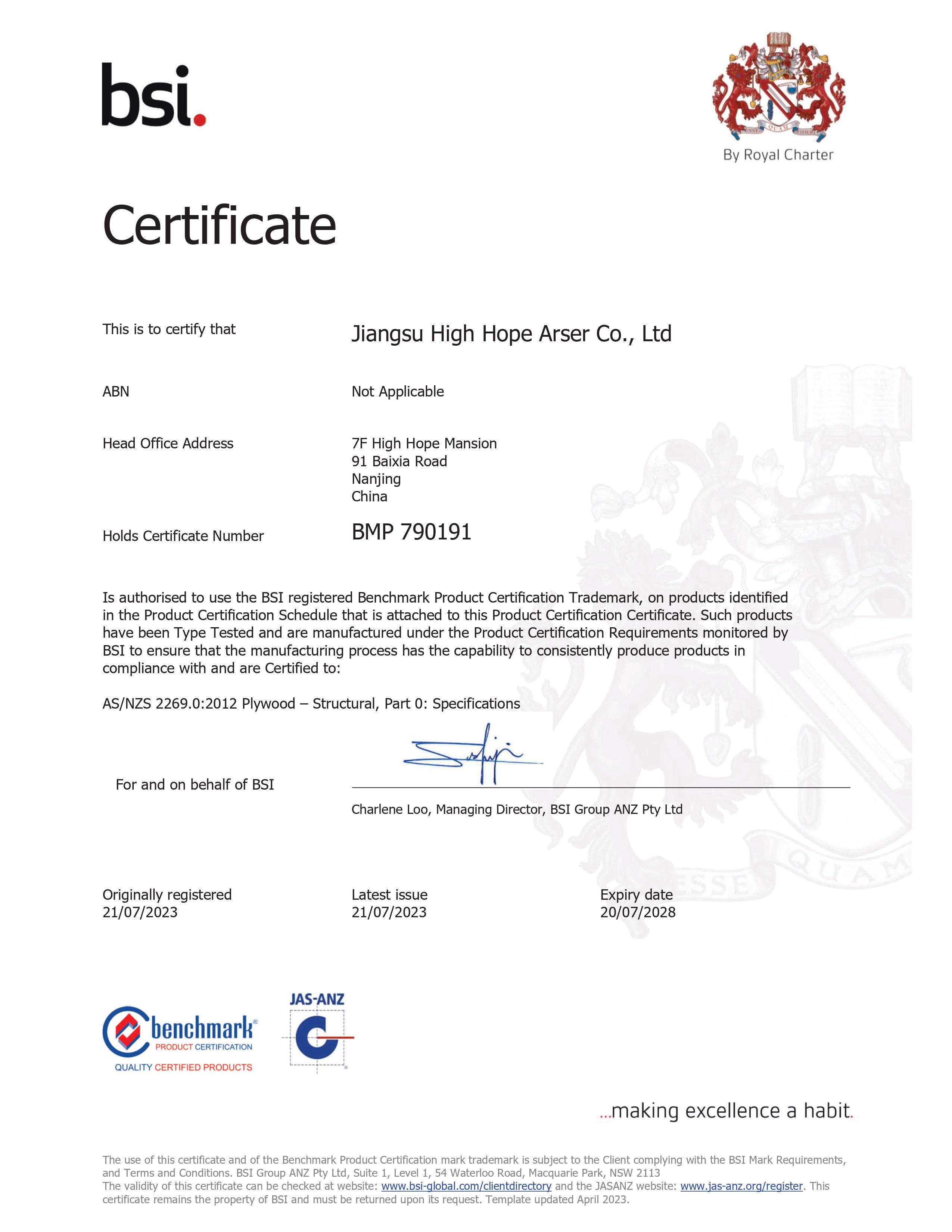近日,我司成功獲得出口澳大利亞/新西蘭結構級膠合板F22等級產品認證證書,成為中國為數不多獲得此項認證證書的企業之一。該證書的獲取極大地提高了我司在澳大利亞和新西蘭市場出口結構級膠合板產品的競爭力,為我司在澳新市場的出口產品種類注入了新動能。